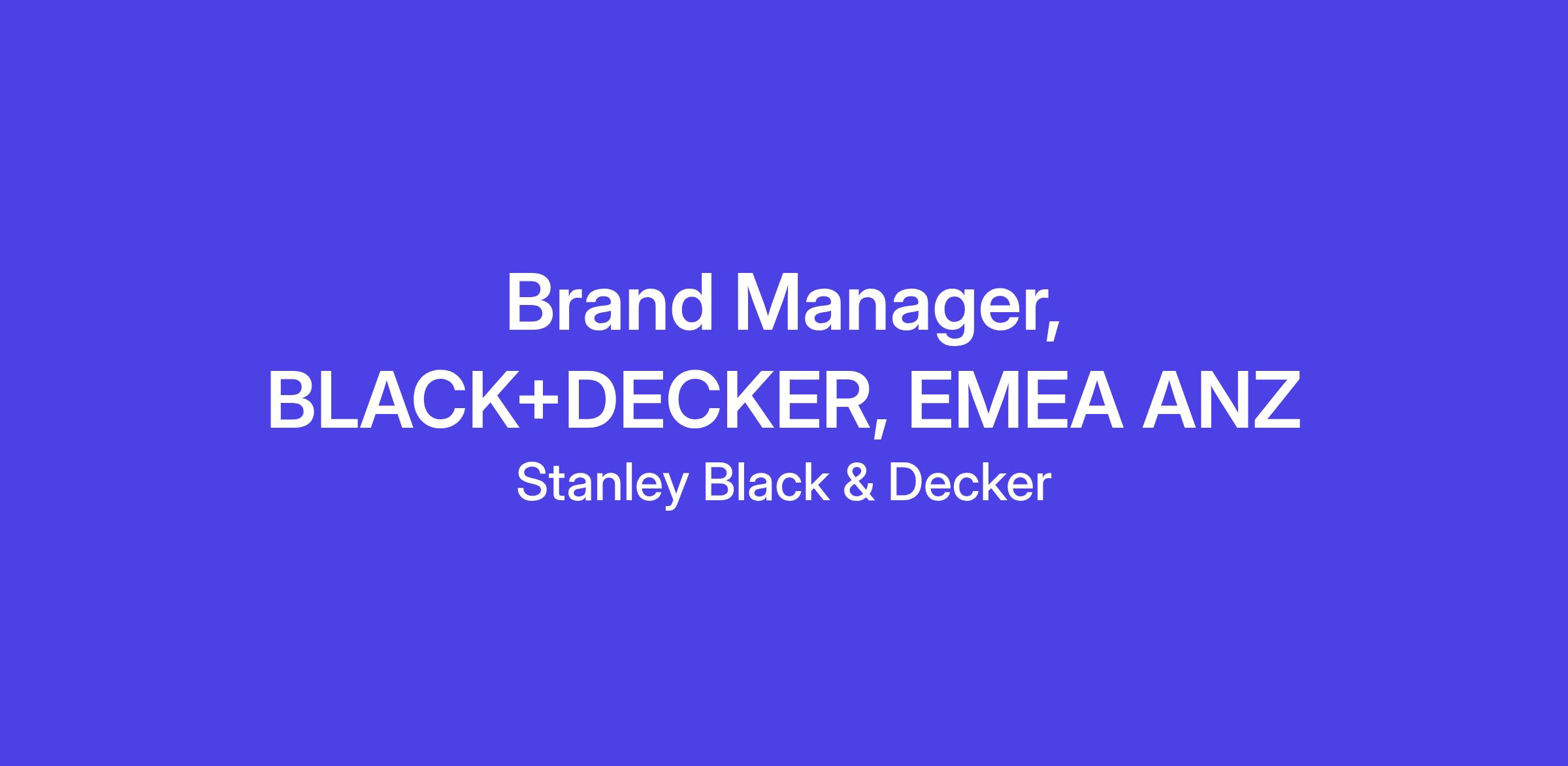 Position Title: Brand Manager (BLACK+DECKER)