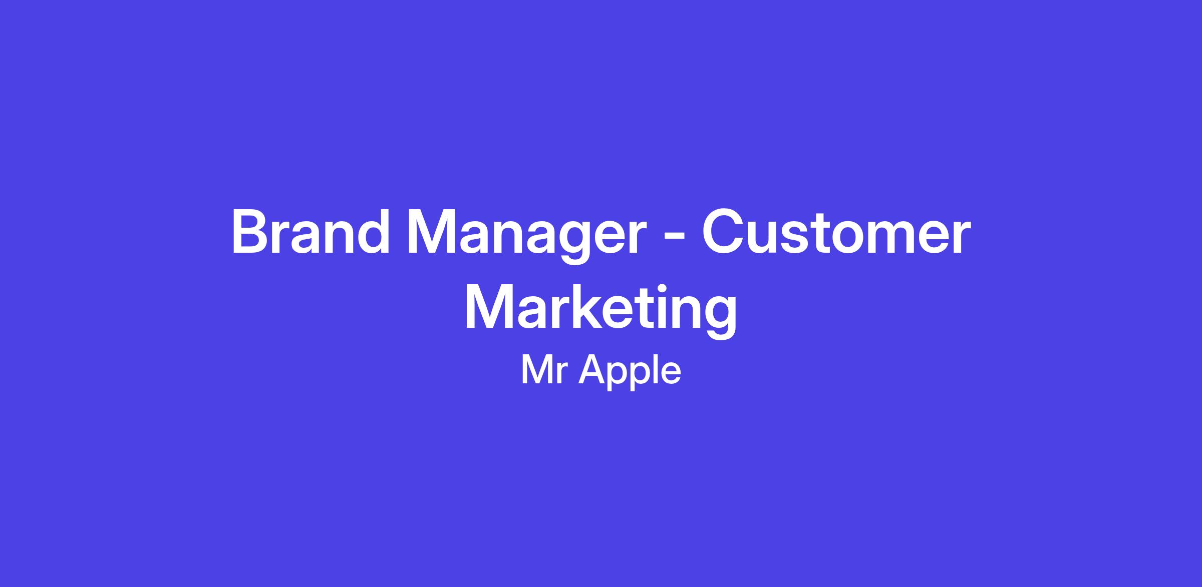 You’ll be the driving force behind our customer marketing execution ensuring the Mr Apple brand is consistent, compelling, and culturally relevant.