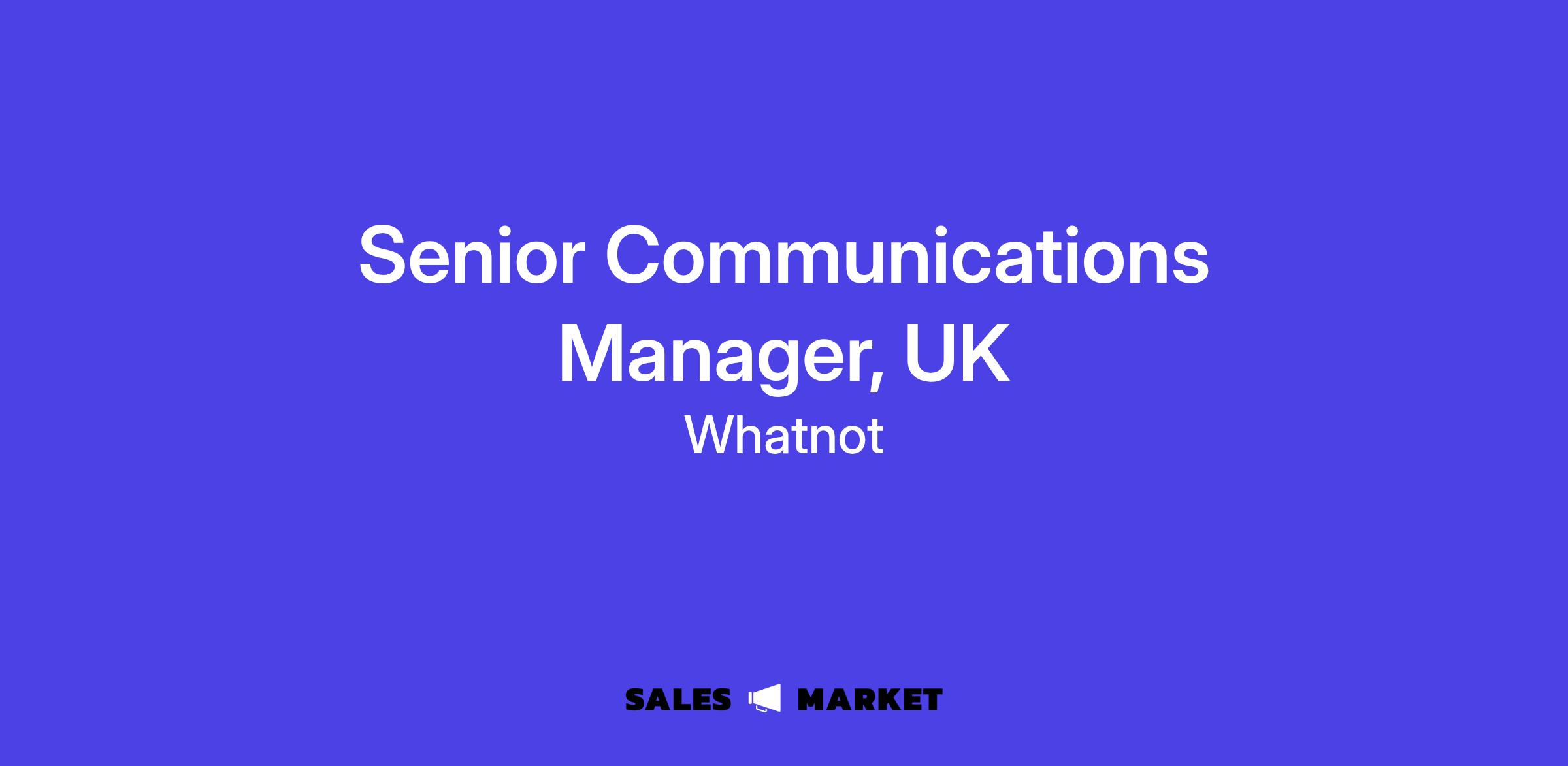 The Communications team at Whatnot works across all areas of the business in both a proactive and reactive capacity, and helps to shape and protect external and internal perceptions of Whatnot. Weāre hiring for an experienced Senior Communications Manager to lead our storytelling across a range of corporate, Trust & Safety, consumer, and policy-related priorities in the UK. This role will be based in London and report into our VP, Communications.