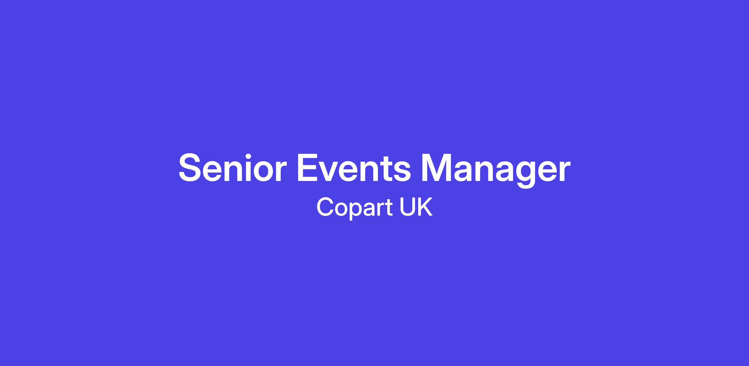 Copart UK is seeking an experienced and highly capable Senior Events Manager to lead our end-to-end events, hospitality and sponsorship programme.