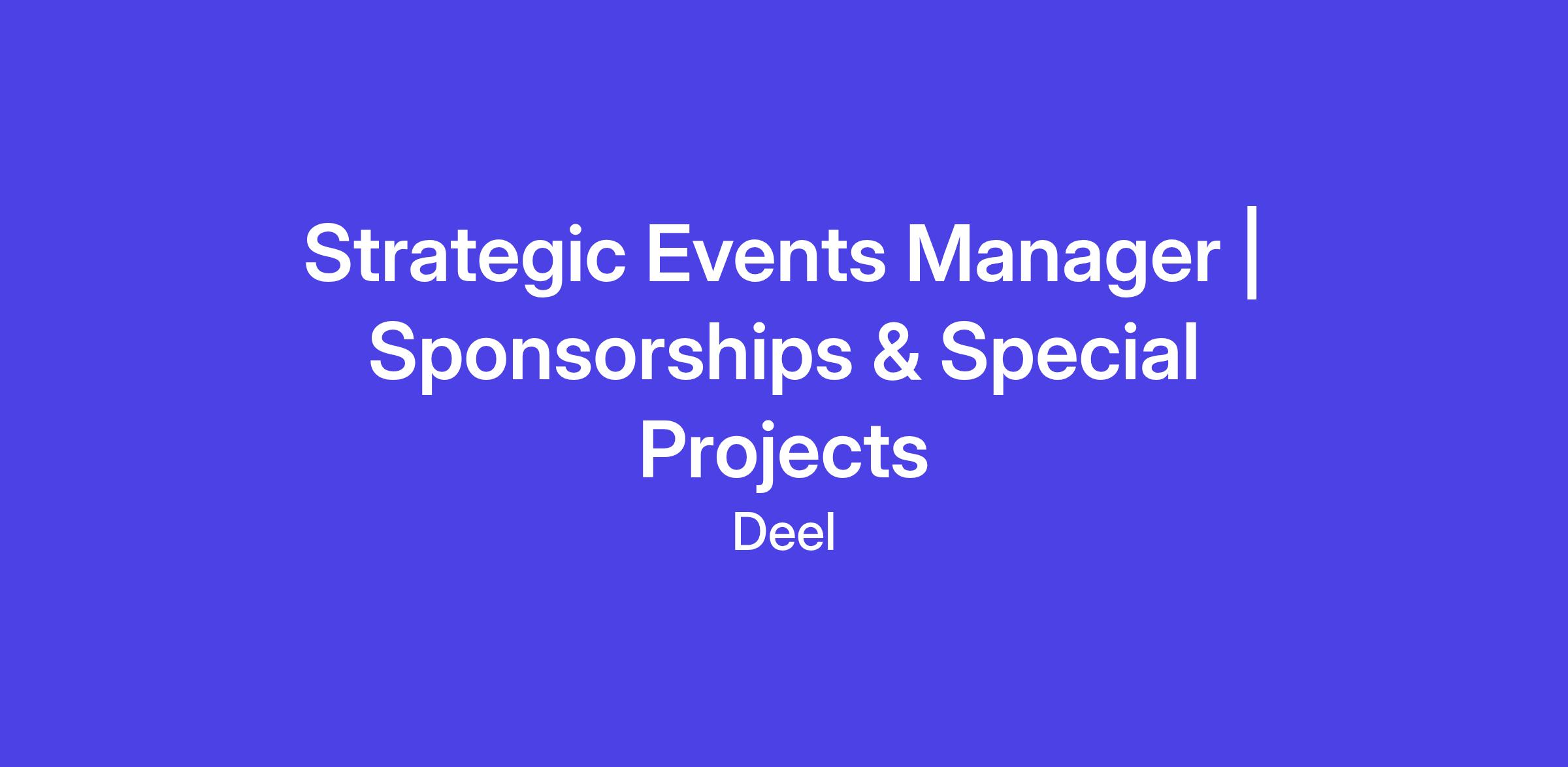 We are hiring a Manager, Event Special Projects & Sponsorships to serve as a cross-functional owner for complex, high-impact event initiatives across Deel’s global events organization.